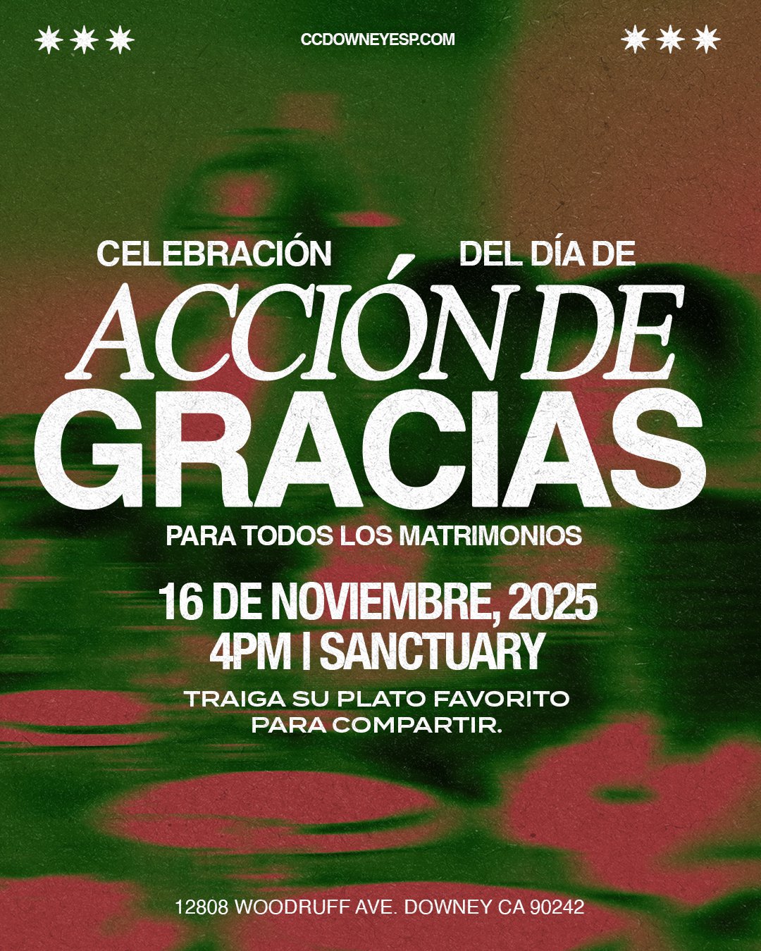 A todas las parejas casadas y comprometidas, las invitamos a disfrutar de un dulce tiempo de compañerismo, tiempo en la Palabra y una deliciosa cena. Nos reuniremos aquí en el Santuario Sur inmediatamente después del servicio. ¡Invite a una pareja! Por favor, visite nuestra mesa para registrarse y traer su plato favorito para compartir.